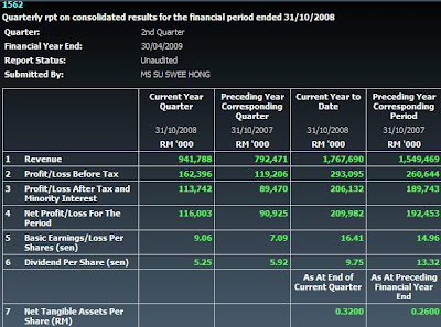 以上是NTPM近两季的业绩,我认为如果投资在NTPM也一个不错的选择,好处是比定期来得多,但NTPM不是一件大起大落的股,成交量也不多。。NTPM的大股东除了是NTPM本身之外,lembaga tabung haji也频频扫货,股份预料也应该有7%以上。。